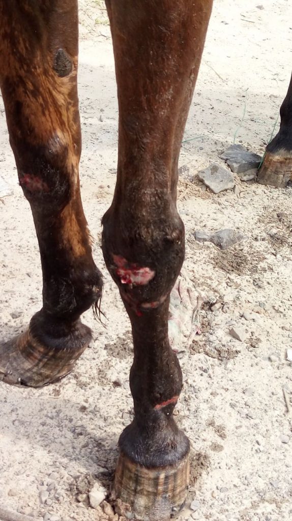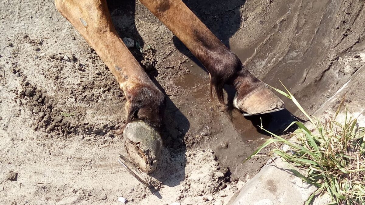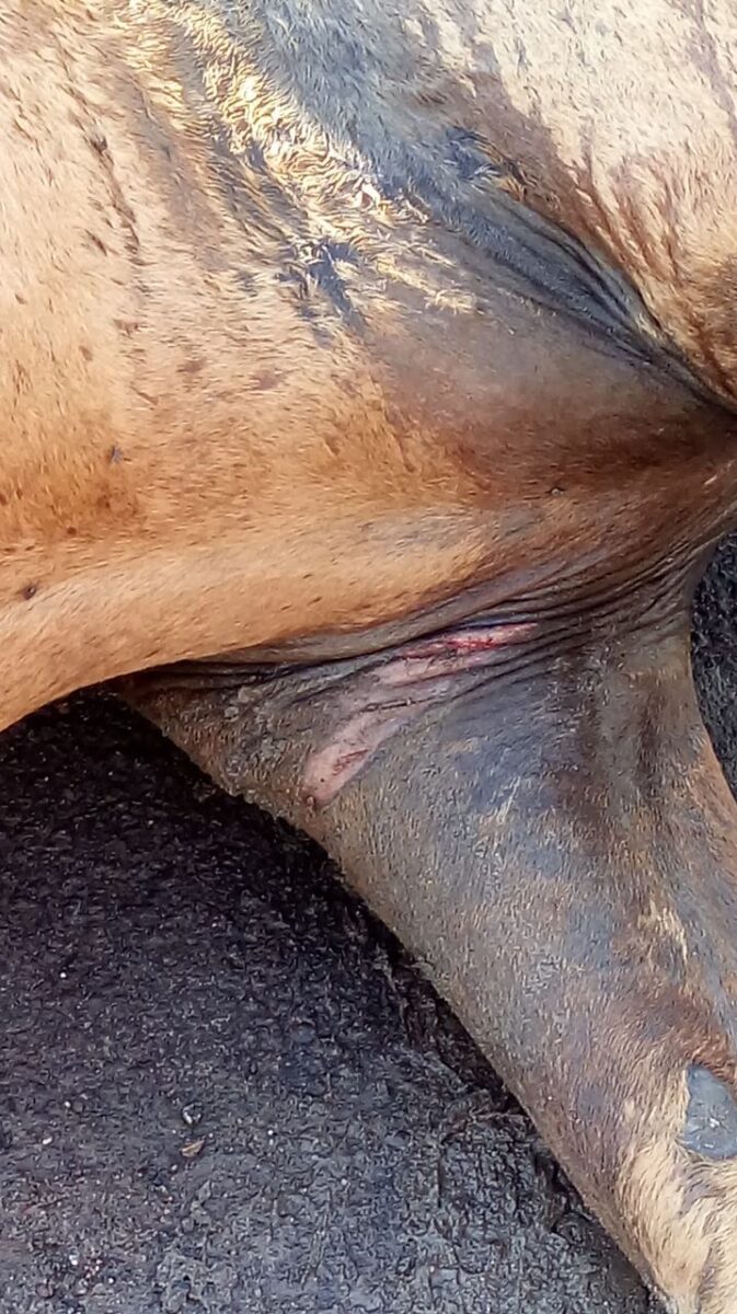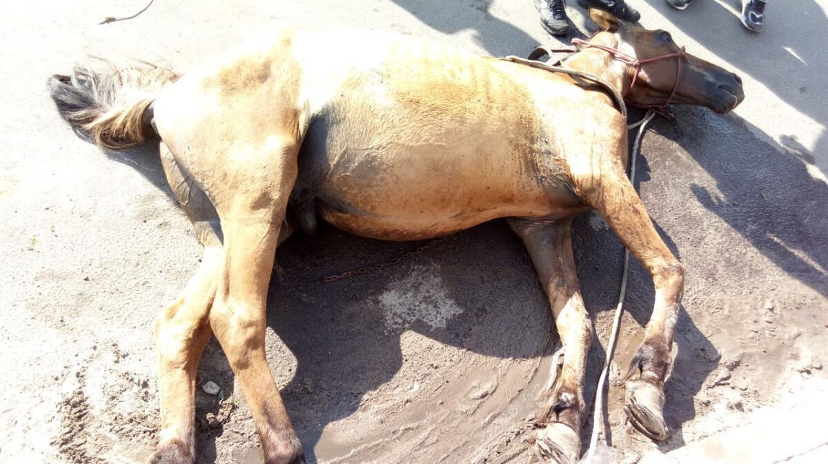 Também foi solicitado um veículo para transportar o equino, pois ele não tinha condições de se deslocar andando.