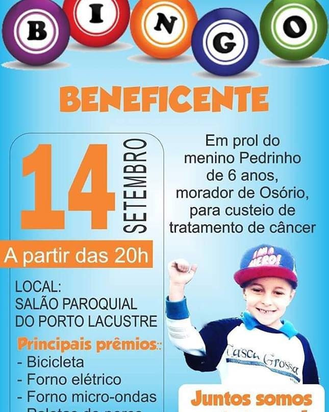 Para custear o tratamento a família com a ajuda de amigos estará realizando um bingo beneficente no dia 14 de Setembro, a partir das 20h, no Salão Paroquial do Porto Lacustre.