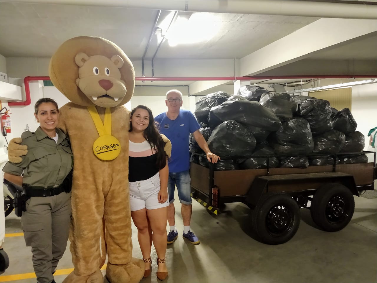 Por determinação do comandante do batalhão, o major Paulo Eduardo Dutra dos Santos, a soldado Deise Saucedo, que trabalha no Estado Maior/Administração e atua diretamente com as ações sociais do quartel em Osório, acompanhou o senhor Flávio e a colaboradora Ana Carolina, que se voluntariou para acompanhá-los nos atos de entrega ao Instituto do Câncer Infantil.