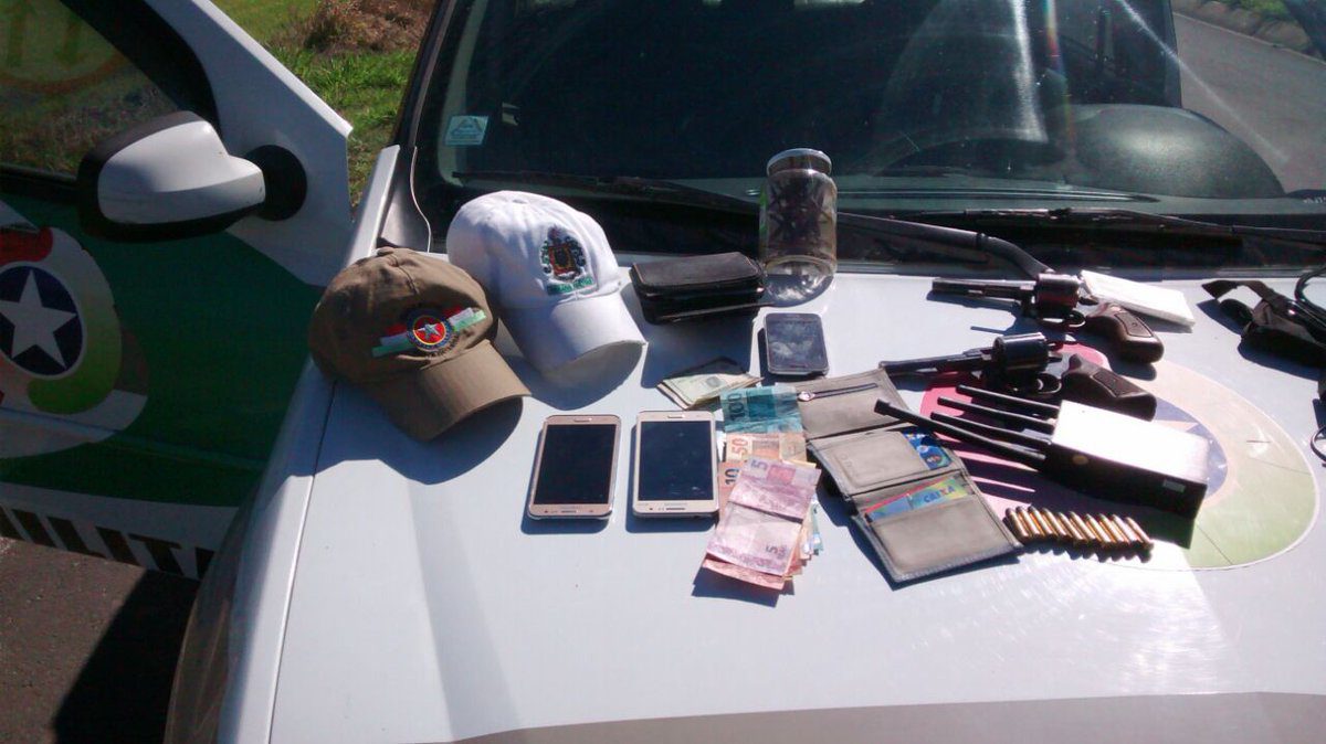 Os criminosos, com idades entre 27 e 31 anos, tinham antecedentes por roubo, roubo de carga e porte de armas. Foram apreendidos dois revolveres calibre 38 e um bloqueador de sinal.