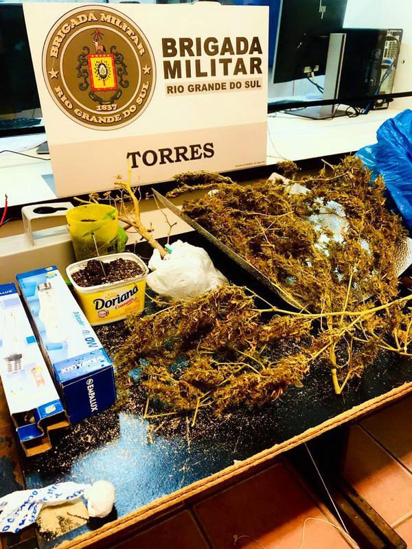 Policiais militares de Torres estavam realizando apoio a uma guarnição da PATRAM, após denúncias de maus tratos a animais, quando flagraram no local uma espécie de laboratório clandestino de cultivo e preparo de drogas.
