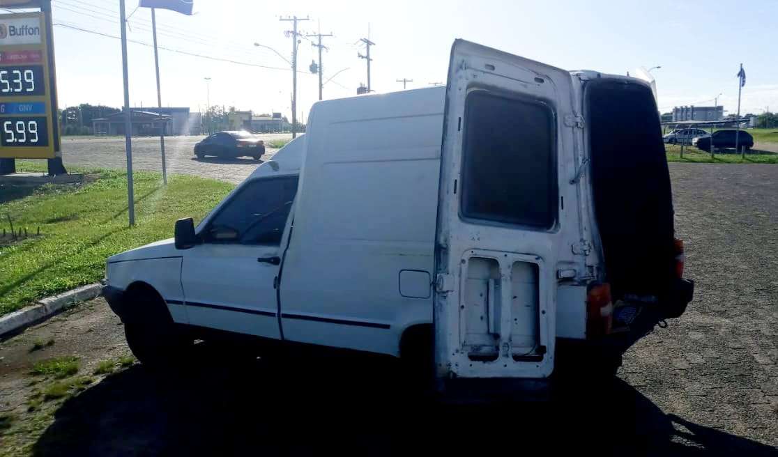 Uma guarnição do 8º BPM foi enviada ao local, abordou os dois homens que estavam no carro, com placas de uma cidade de Santa Catarina.