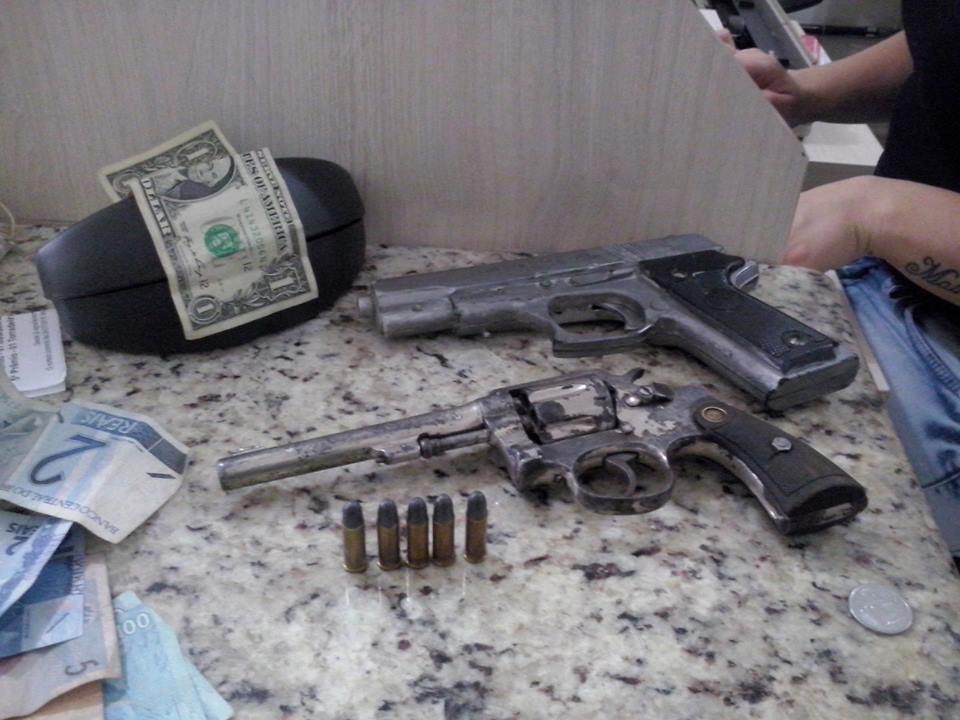 Eles foram presos e em revista foi localizada duas armas, sendo um simulacro de PT e um Revólver Cal .32.