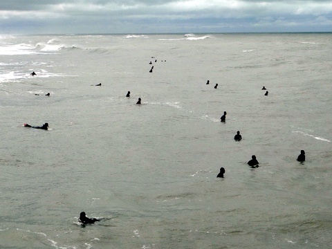 Em Xangri-Lá, no feriado, muitos pegavam onda nas proximidades da Plataforma de Atlântida.
