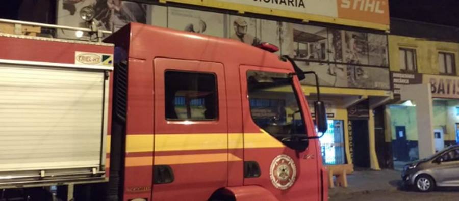 O fogo iniciou pouco depois das 20h, em uma loja de ferramentas, na Avenida Fernandes Bastos.