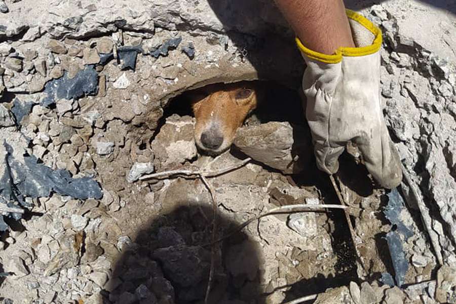 Bombeiros voluntários de Balneário Pinhal salvaram neste sábado (29), um cão preso em um bueiro.