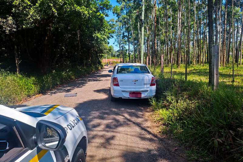Após diligências intensivas, os policiais localizaram o veículo, um Chevrolet Cobalt branco, abandonado na região.