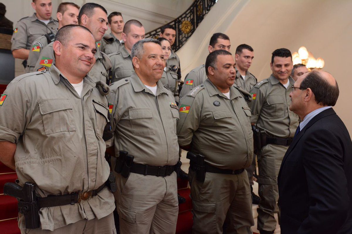 Os 14 policiais militares que recusaram propina quando participaram de uma operação no último dia 10, quando nove pessoas suspeitas de envolvimento com tráfico de drogas foram presas pela Brigada Militar em Tramandaí, foram homenageados pelo governador José Ivo Sartori e o secretário de Segurança, Cezar Schirmer, nesta segunda-feira (28), no Palácio Piratini.