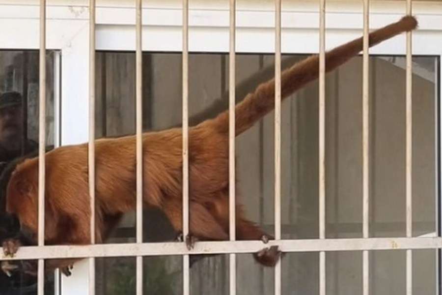 Uma equipe da Patram de Porto Alegre foi acionada para o bairro Estalagem, em Viamão, visando resgatar um exemplar de Bugio Ruivo que estava nos fundos de uma residência há dois dias.