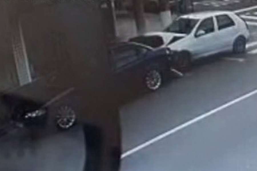 Na imagem é possível ver um veículo Palio já danificado, colidindo na traseira de um Vectra estacionado.