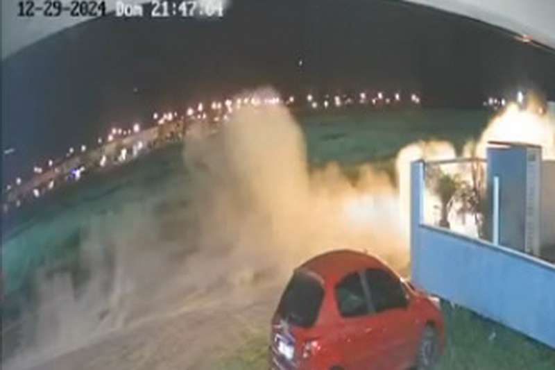Uma câmera de vigilância capturou imagens de um acidente impressionante na Estrada do Mar (ERS-389), em Osório, na noite deste domingo (29).