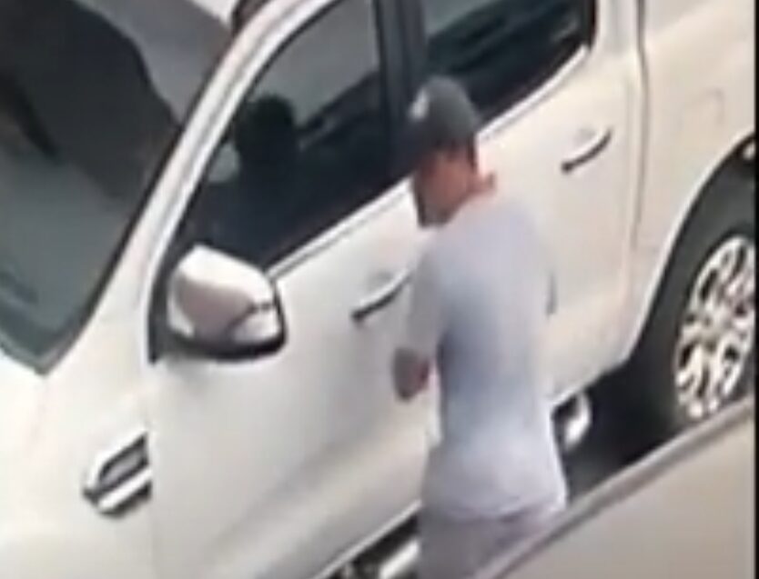 Ele chega em uma Meriva Joy, estaciona no local e vai em direção a uma caminhonete.