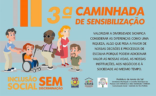O Conselho dos Diretos da Pessoa com Deficiência e/ou Altas Habilidades de Arroio do Sal promove, na tarde de segunda-feira (31), a Caminhada Inclusiva em comemoração a Semana Estadual dos Direitos da Pessoa com Deficiência.