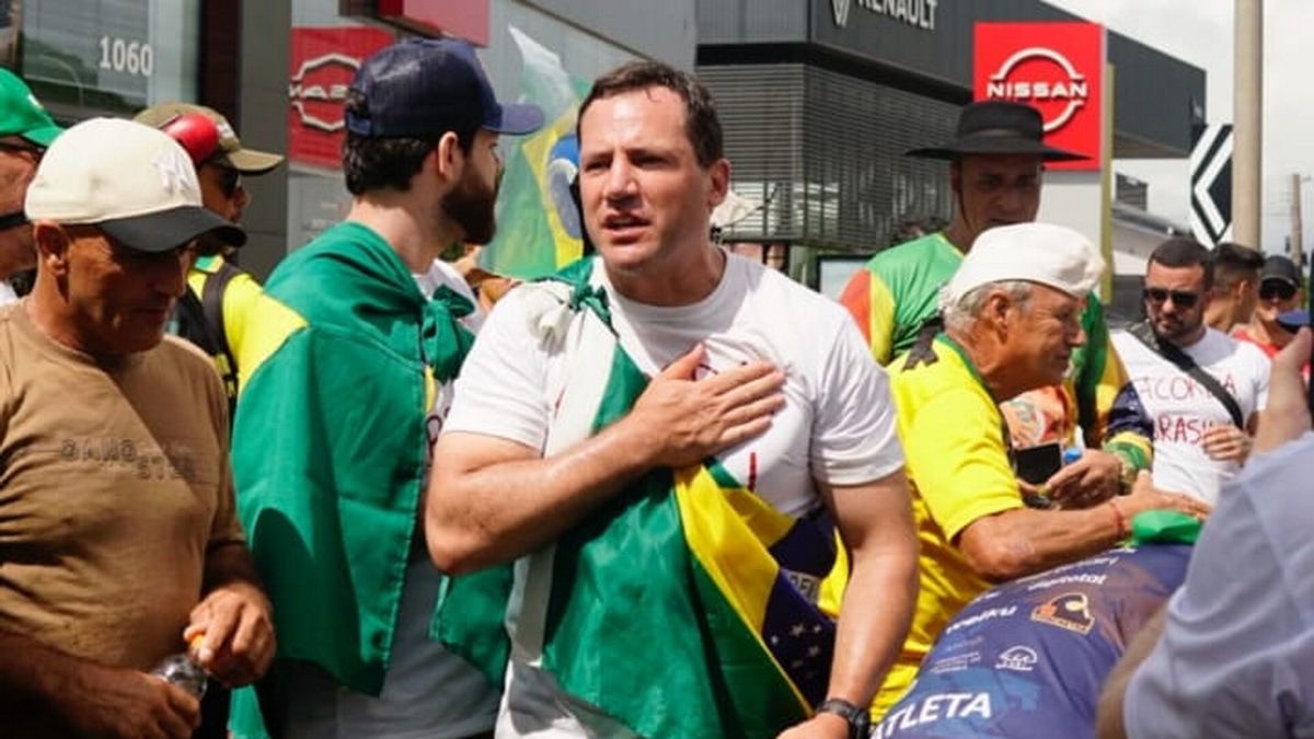 Ao longo do percurso, Marcelo Ustra se integrou ao trajeto usando camiseta com o slogan “liberdade para Bolsonaro”.