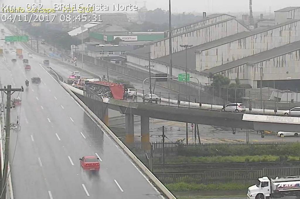 Um caminhão tombou, na manhã deste sábado (4), na chegada a Porto Alegre pela Freeway, na altura da BR-116. O veículo, carregado com lixo hospitalar, virou na alça de acesso à BR-290, sentido Interior-Capital.