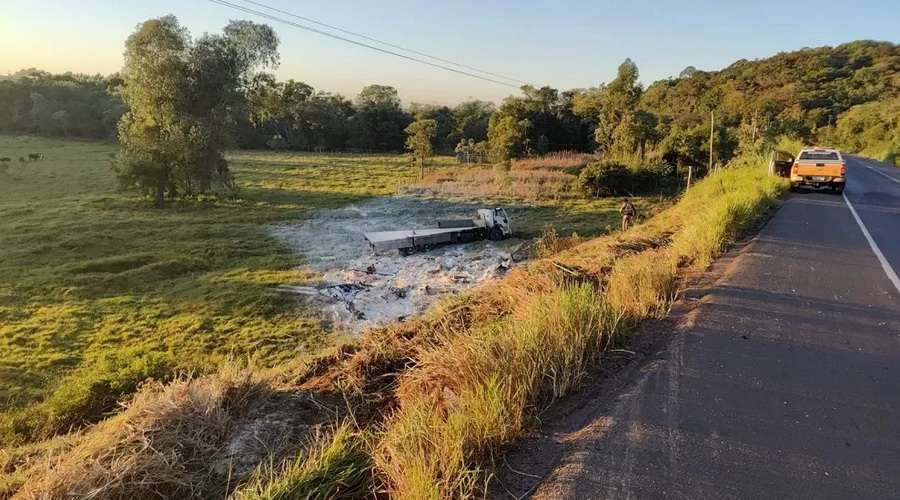 Ele trafegava no sentido Serra-Litoral e estava carregado com cal.