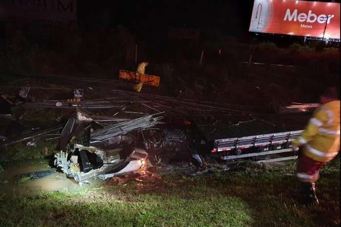 Conforme a Polícia Rodoviária Federal (PRF), o veículo, que tinha placas Feliz, transportava barras de ferro, quando saiu da pista no km 15 da rodovia.