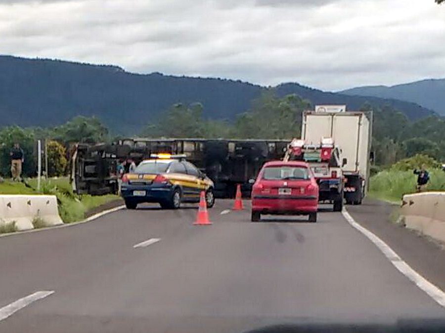 Caminhão tomba na BR-101