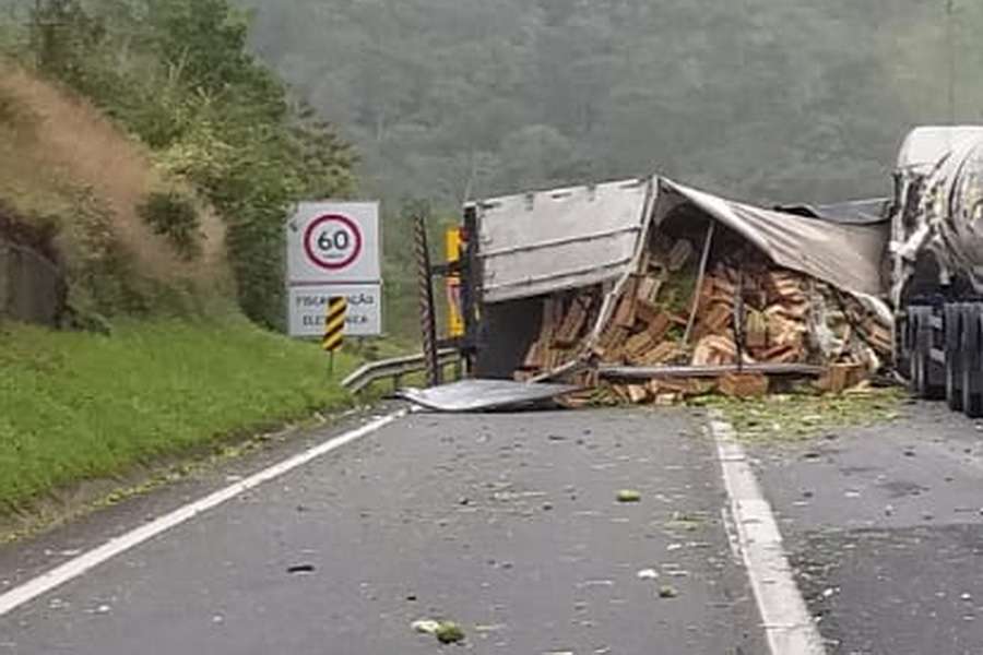 A colisão envolveu três carretas, seguida de tombamento com derramamento de carga, no km 550 da rodovia Régis Bittencourt, na pista sentido Curitiba, em Barra do Turvo, em São Paulo.