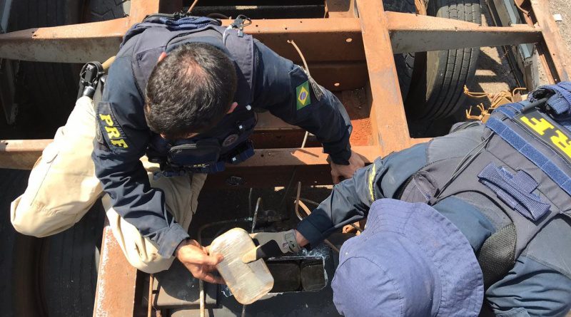 Os agentes descobriram diversos tabletes de crack ocultos em um compartimento preparado para o transporte da droga na carroceria do veículo, somando cerca de 76 quilos de droga.