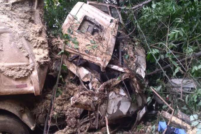 O caminhão teve bastante danos materiais.