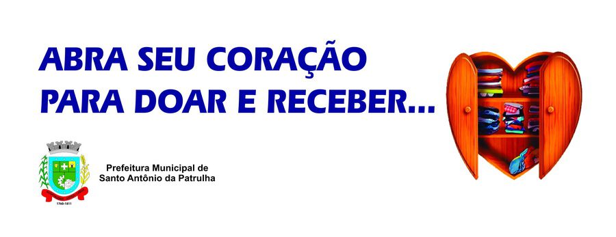 Com o tema “Abra seu Coração para doar e Receber”, a Campanha do Agasalho 2016 de Santo Antônio da Patrulha, tem o objetivo de ajudar e auxiliar pessoas em situação de dificuldade e vulnerabilidade social, que enfrentam o inverno, muitas vezes, sem as mínimas condições. A comunidade patrulhense deve doar agasalhos em boas condições.