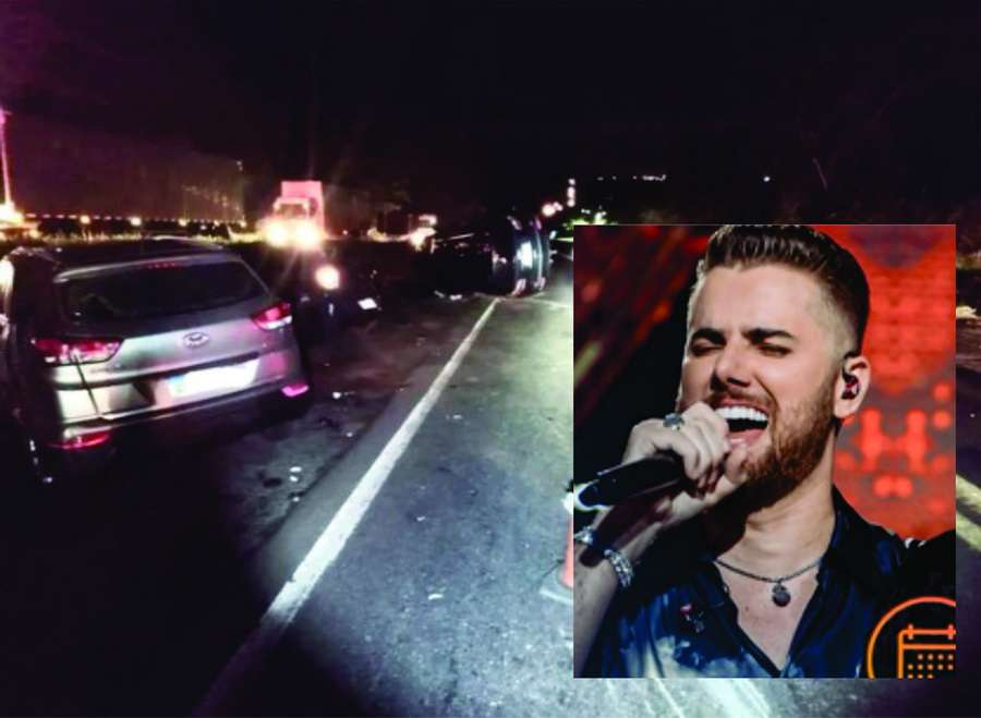 O veículo do cantor capotou após colisão na rodovia.