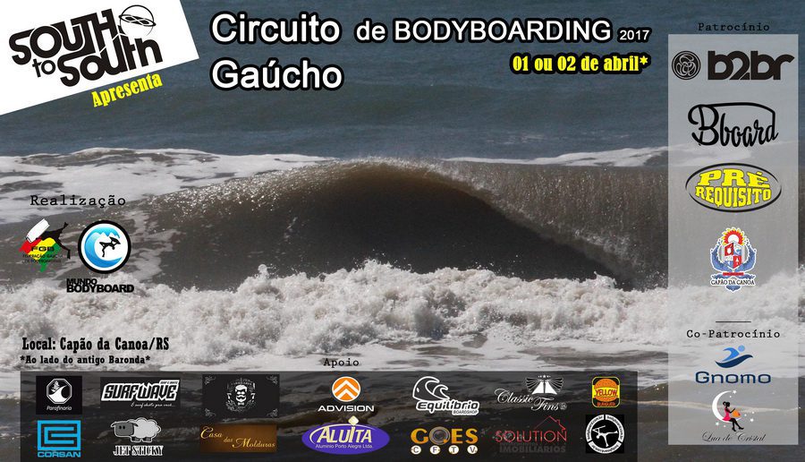 Capão da Canoa receberá nos dias 1 e 2 de abril os melhores bodyboarders do sul do Brasil para a disputa da 1ª etapa do Circuito Gaúcho de Bodyboarding 2017. O evento é uma realização conjunta da Federação Gaúcha de Bodyboarding (FGB) com o site Mundo Bodyboard.