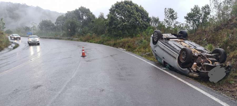 Um veículo capotou na tarde desta sexta-feira (02), na ERS-030, em Santo Antônio da Patrulha.