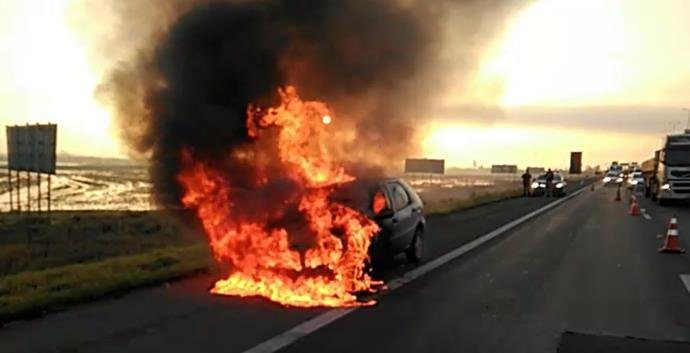 De acordo com a Polícia Rodoviária Federal (PRF), um Fiat Palio pegou fogo por volta das 7h30min, no km 87 da rodovia, próximo ao acesso a Cachoeirinha.