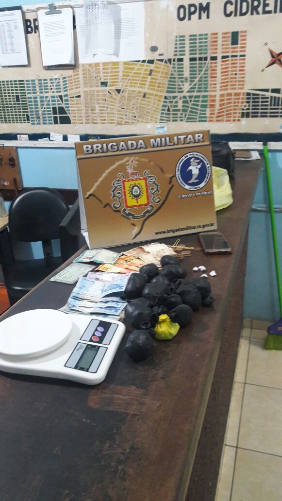 Um casal foi preso pela Brigada Militar após denuncia anônima, por tráfico de drogas, na noite dessa segunda-feira (16), em Cidreira. O flagrante ocorreu na Rua 14 do bairro Chico Mendes.
