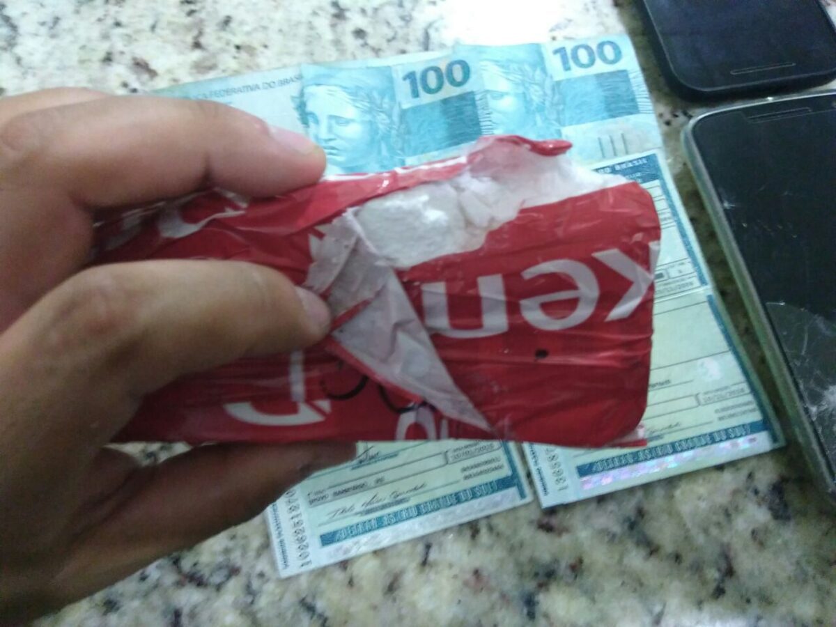 Com a dupla foi encontrado um tijolo de cocaína, pesando 200 gramas.