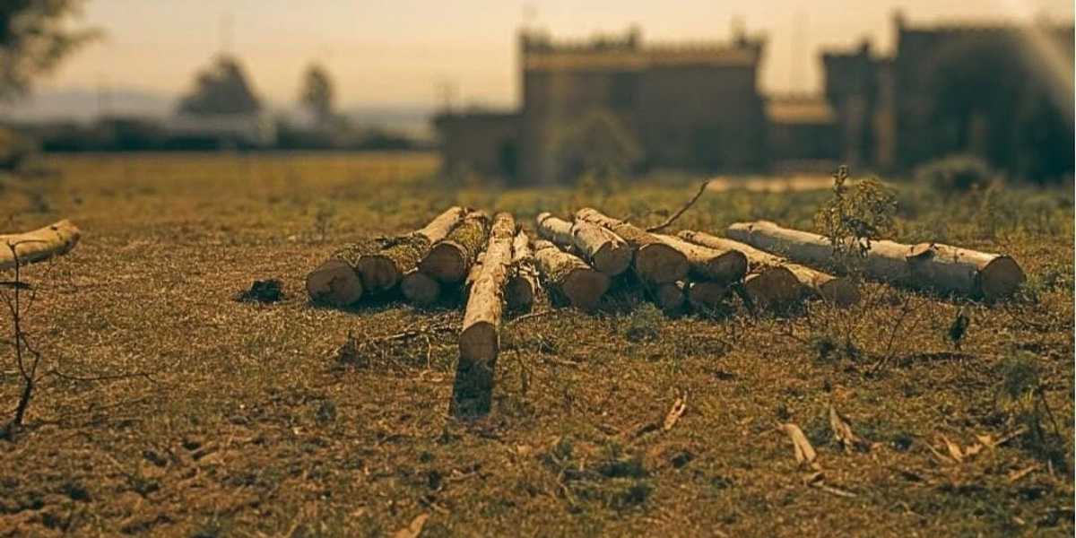 Ao chegarem, os policiais se depararam com um homem utilizando uma motosserra para cortar árvores da espécie Eucalyptus sp.