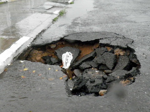 Na Rua Coronel Reduzino Pacheco, no centro da cidade, o asfalto acabou cedendo, fazendo com que os motoristas tenham cuidado ao passar pelo local.