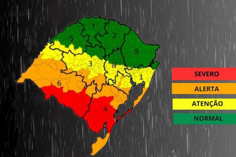 A região da Campanha e o Sul do estado estão em alerta, com previsão de acumulados que podem atingir até 300 mm.