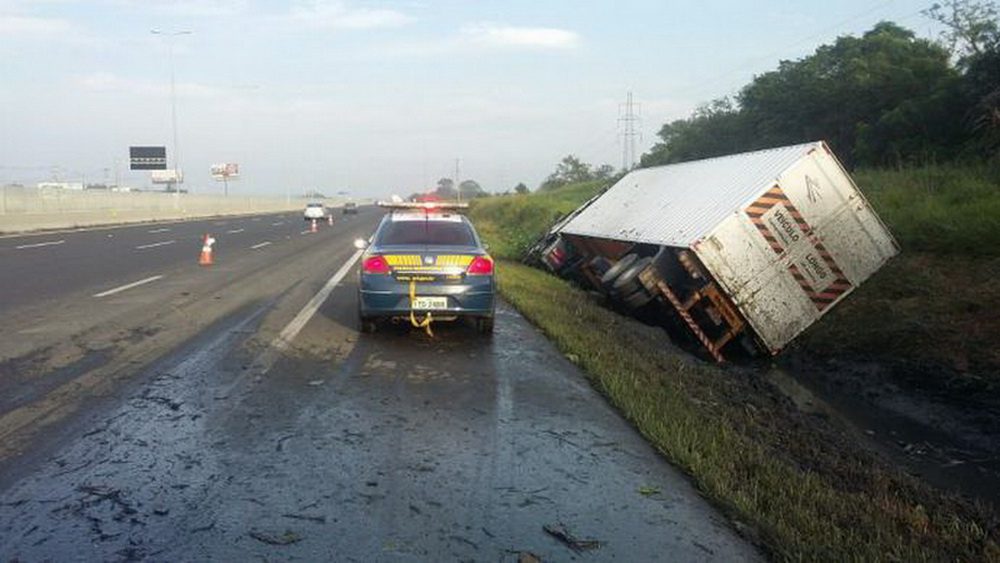 Um ciclista foi atropelado por uma carreta na manhã desta terça-feira, no km 80 da freeway.
