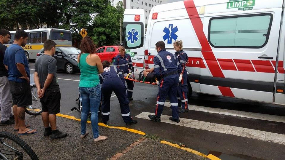 Um ciclista ficou ferido ao ser atingido por um veículo, no início da tarde desta sexta-feira (10), no centro de Osório.