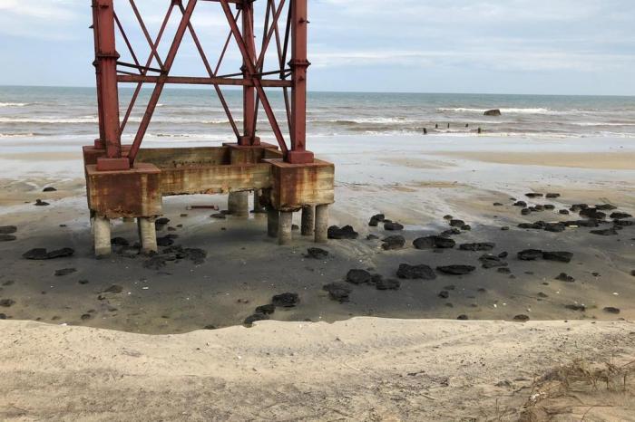 O avanço do mar, porém, começou a descobrir esses depósitos mais antigos, que costumam estar da zona de rebentação a até 10 quilômetros da costa, numa profundidade que chega a 10 metros.