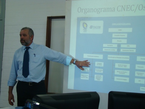 Conduzido pelo diretor da CNEC/Osório, prof. Adelar Hengemühle, o encontro inciou com uma apresentação detalhada do Planejamento Estratégico 2012, com os objetivos e indicadores que precisarão ser alcançados pelas 4 principais coordenações da CNEC/Osório: Coordenação Administrativa, Coordenação Acadêmica, Coordenação de Relações Comunitárias e Marquês de Herval.