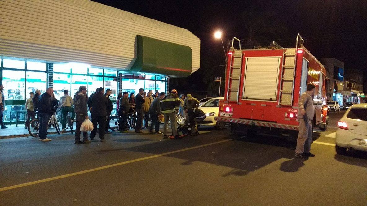 Uma colisão por volta das 18h35min envolveu uma ciclista e um veículo, na Rua Costa Gama, bem em frente a um mercado em Osório.