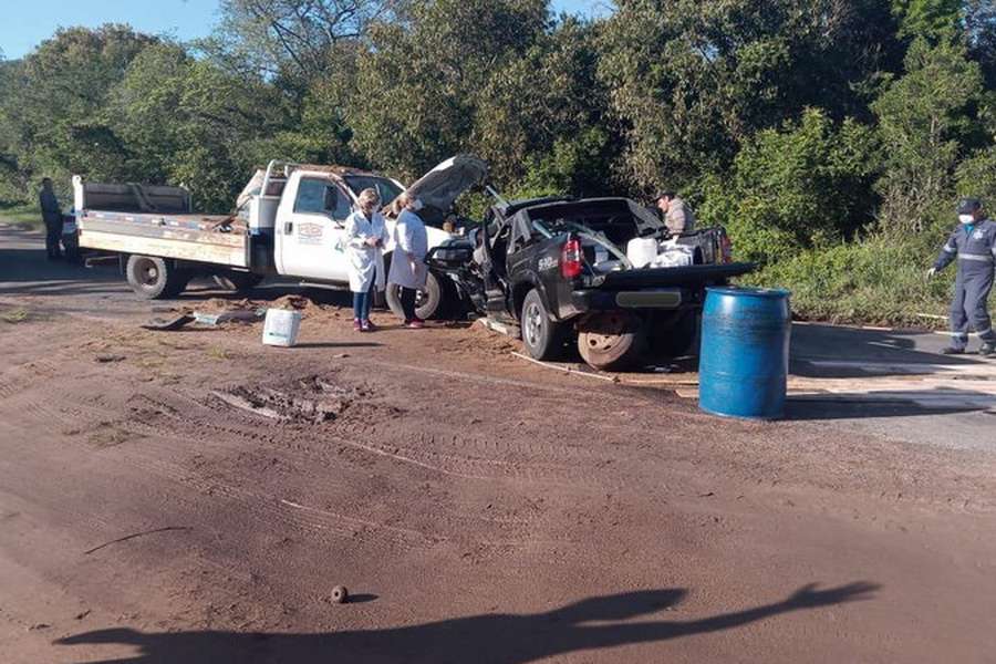 Uma colisão envolveu duas caminhonetes na manhã desta quinta-feira (16), na ERS-030.