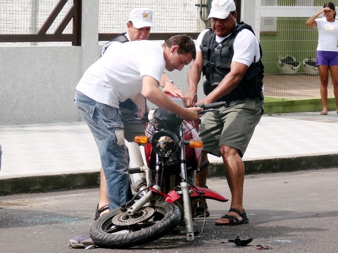 Mauricio Lopes, condutor da moto, teve um corte profundo no ombro e foi encaminhado ao hospital local, juntamente com a caroneira Mara Luiza Lopes, 35 anos.