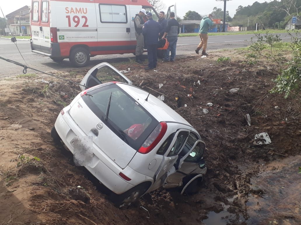 Com o impacto, o Corsa chegou a cair em um valo, na lateral da rodovia, mas não houve feridos.