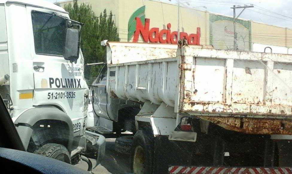 Uma colisão envolveu dois caminhões, por volta das 14h55min desta quarta-feira, na Avenida Paraguassú, próximo ao mercado Nacional, em Imbé.