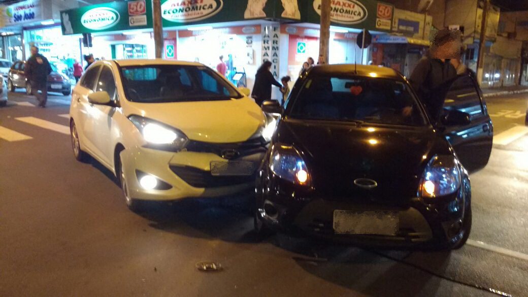 Uma colisão envolveu dois veículos na noite desta quarta-feira (05), na esquina das ruas Júlio de Castilhos e Machado de Assis, no centro da cidade.