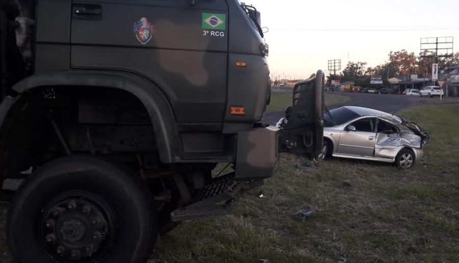 Uma colisão envolvendo um veículo Astra, de Três Cachoeiras e um caminhão, do Exército brasileiro, deixou três pessoas feridas na tarde desta quinta-feira (07), em Osório.