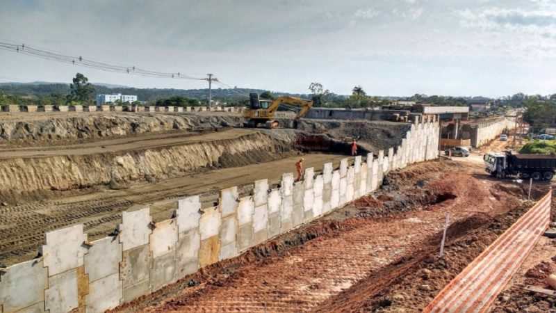 O lado direito, no sentido Litoral-Porto Alegre, está finalizado. No momento, os trabalhos concentram-se no outro lado, onde já foram concluídos os pilares e as vigas. O próximo passo é a execução das lajes, os acessos e o muro de contenção da rua lateral.