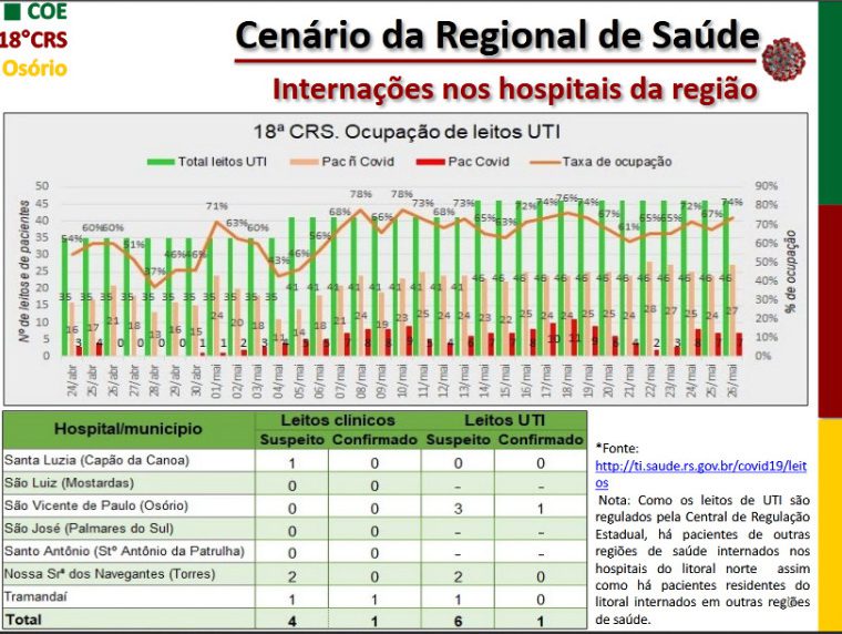 Torres, Osório, Arroio do Sal e Cidreira tiveram um óbitos pelo covid-19. Tramandaí, tem duas mortes.