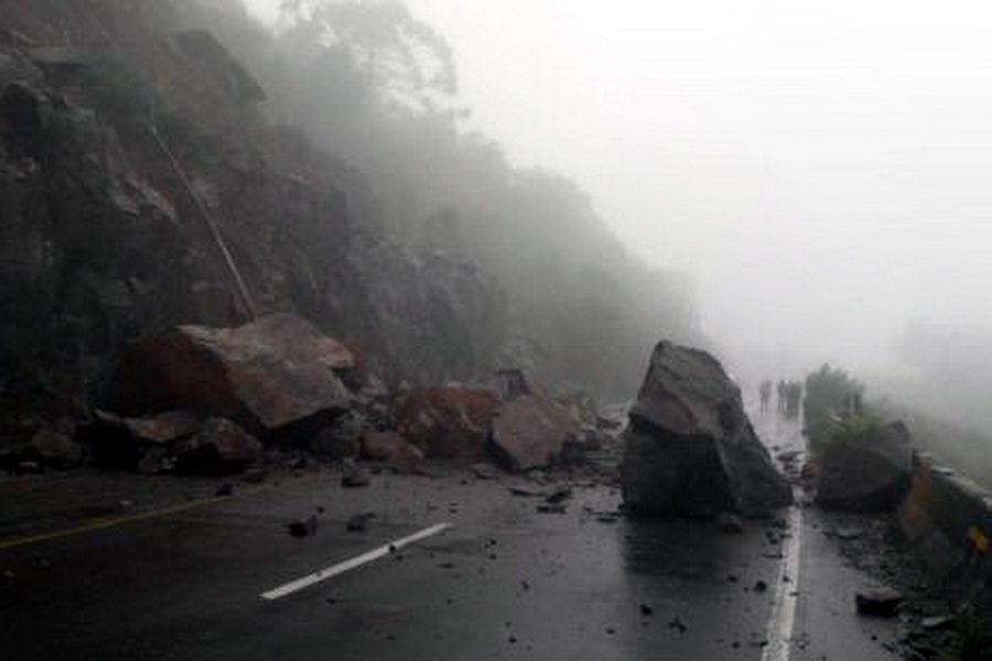 A queda de parte de uma encosta da Rota do Sol bloqueou totalmente o trânsito na rodovia, nesse domingo (02).