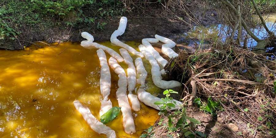 O vazamento chegou a um arroio que tem ligação com a lagoa.